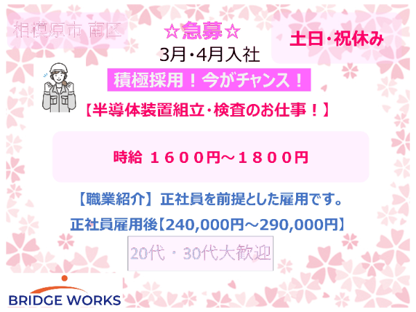 | 職種 | 半導体装置組立・検査スタッフ |